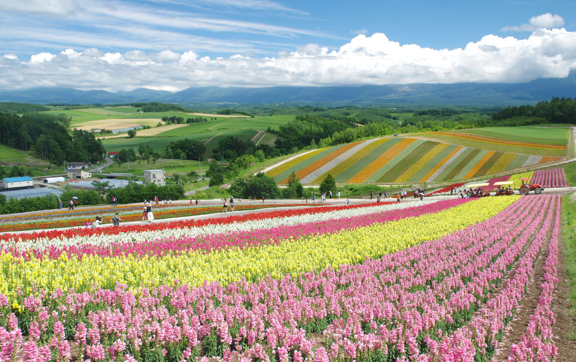 사계절 내내 다른 색깔을 보여준다는 사계채의 언덕은 북해도의 명산, 토카치산을 전경으로 수만평의 다양한 꽃이 가득합니다. 산책을 하거나 열차를 타고 사계채를 구경할 수 있고 알파카 체험장과 다양한 기념품을 판매합니다.