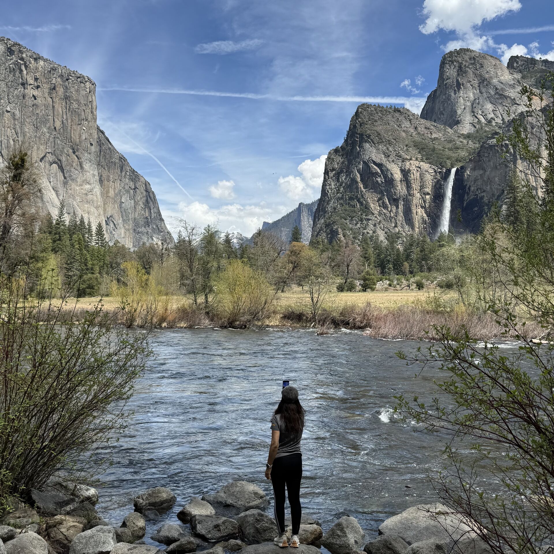 밸리의 흐르는 물 위로 비치는 요세미티의 절경을 사진 하나로 담을 수 있는 사진 맛집 요세미티 밸리 퓨 포인트에서 인생샷 하나 남기고 가요!