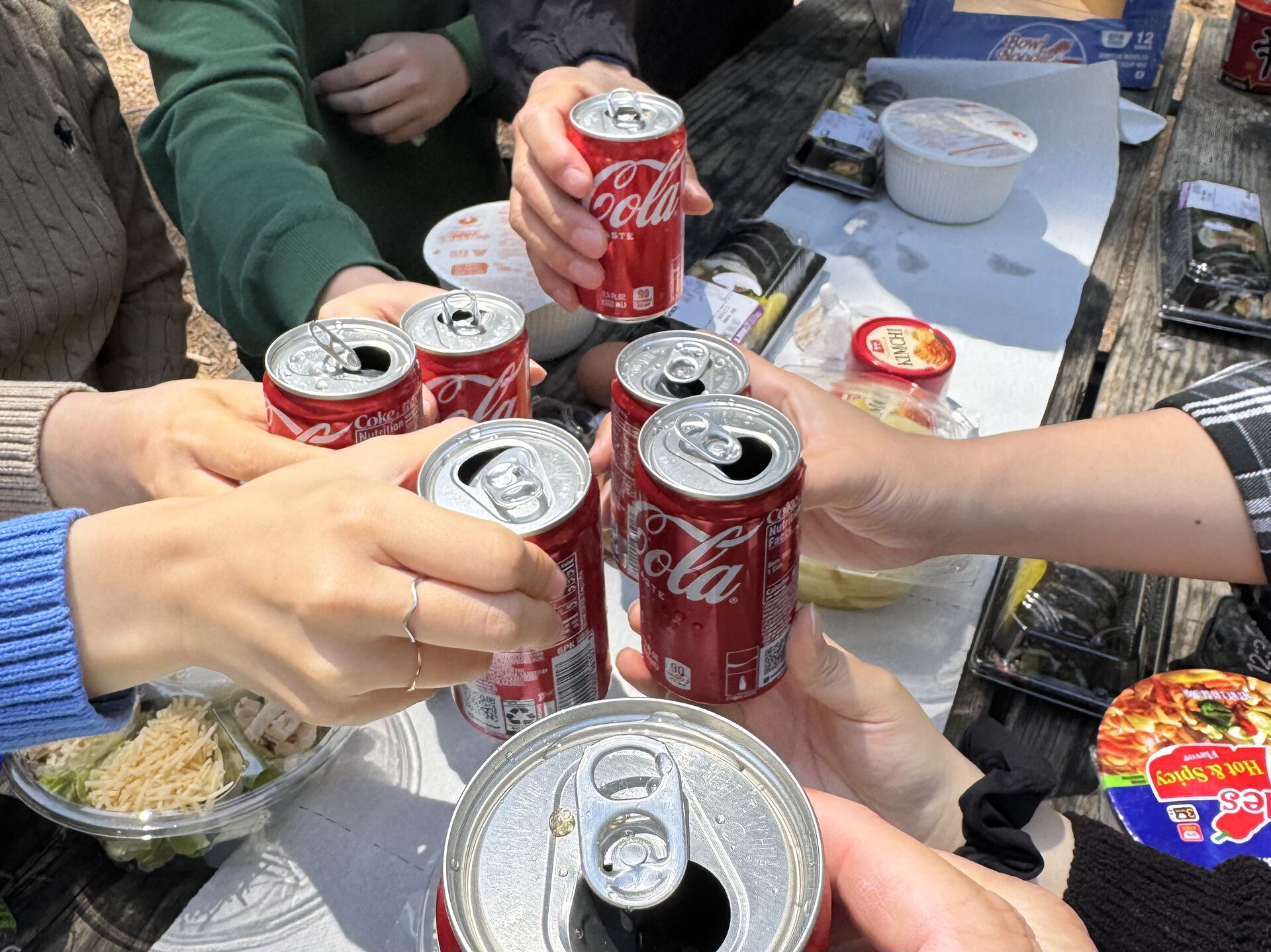 메뉴는 계절마다 다르니, 오늘은 어떤 먹을 거리가 준비 되었을까 기대해 봅니다. 아무리 그래도 컵라면 만은 포기 못합니다. 살짝 피크닉 사진 한 번 보고 가요. 피크닉 기분 제대로 내 봐요, 우리. (눈, 비 등 현장 상황에 따라 진행이 힘들시 요세미티 레스토랑으로 진행 될 수 있습니다.)