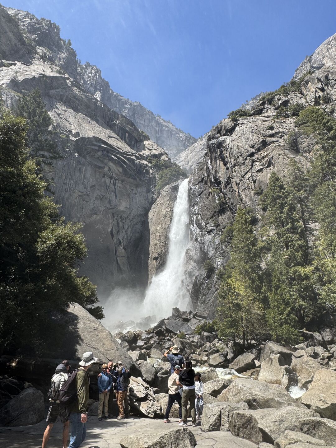 요세미티의 험악한 산악들 사이로 흘러내리는 폭포수가 많이 있는데 이것은 어퍼 Upper, 미들 Middle, 로우어 Lower 3단계로 이루어진 폭포입니다. 폭포수 앞까지의 약 30분 정도의 가벼운 트래킹으로 온몸으로 요세미티를 느껴 봅니다.