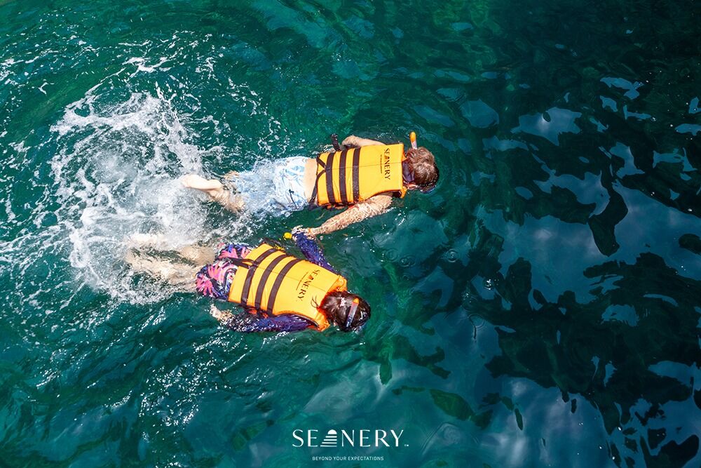 스노클링 장비 이용 (선상에서 제공, 일회용 마우스피스 제공)