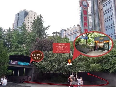 남경서로에 위치한 신세계성남문에 도착후 맞으편 시티투어버스 대기한 뒤편위치에서 차이나스토리 붉은색깃발 들고 있는 가이드 미팅하시면 됩니다. 택시이용시주소:上海市 黄浦区 南京西路 68号( 新世界城城 南二门) 지하철이용시:인민광장(人民广场站)역에 7번출구 나오신후 좌측 계단위로 올라가시면 미팅장소 입니다.