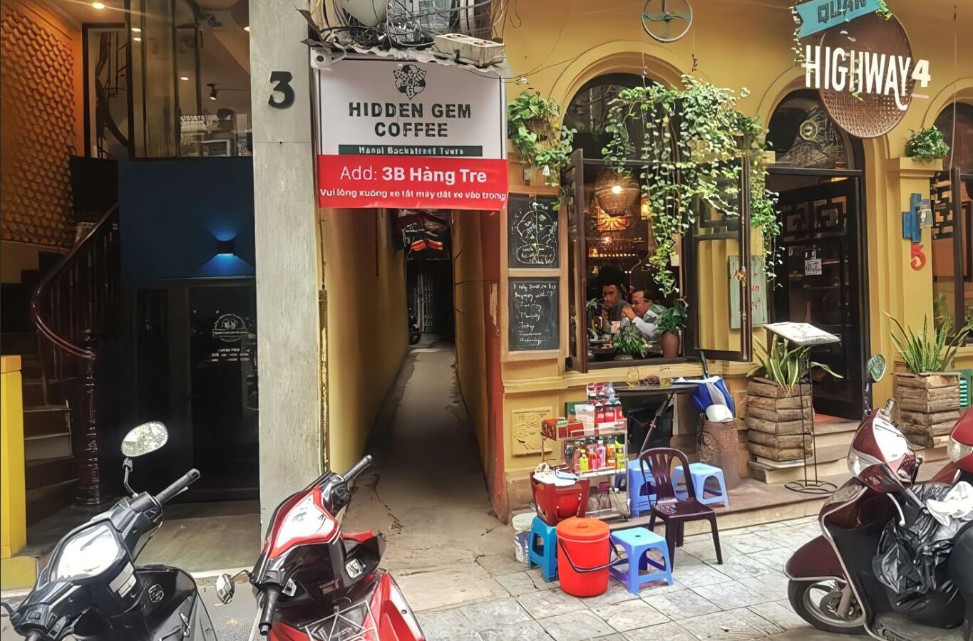 HIDDEN GEM CAFE (33 P. Hàng Bè Hàng Bạc Hoàn Kiếm Hà Nội, 베트남) 올드 쿼터 내 호텔 무료 픽업 제공합니다. (픽업 시간 바우처에서 확인) 해당 링크에서 호텔명으로 검색해 주세요. https://www.google.com/maps/d/u/0/viewer?hl=en&mid=1WCN5b9yN0Qays3xBrvJqN16b1S2n2Vo&ll=21.032637369687684%2C105.8515454&z=16 올드 쿼터 내 호텔이 아닌 경우 지정된 장소로 와주셔야 합니다. 미팅 장소 : Hidden Gem Coffee No. 3B Hang tre Street, Hoan Kiem, Hanoi 미팅 시간 : 예약확정서 안내. (15분전까지 꼭 도착해 주세요.) https://maps.app.goo.gl/v3RL1bCNHQ4qWwwZA