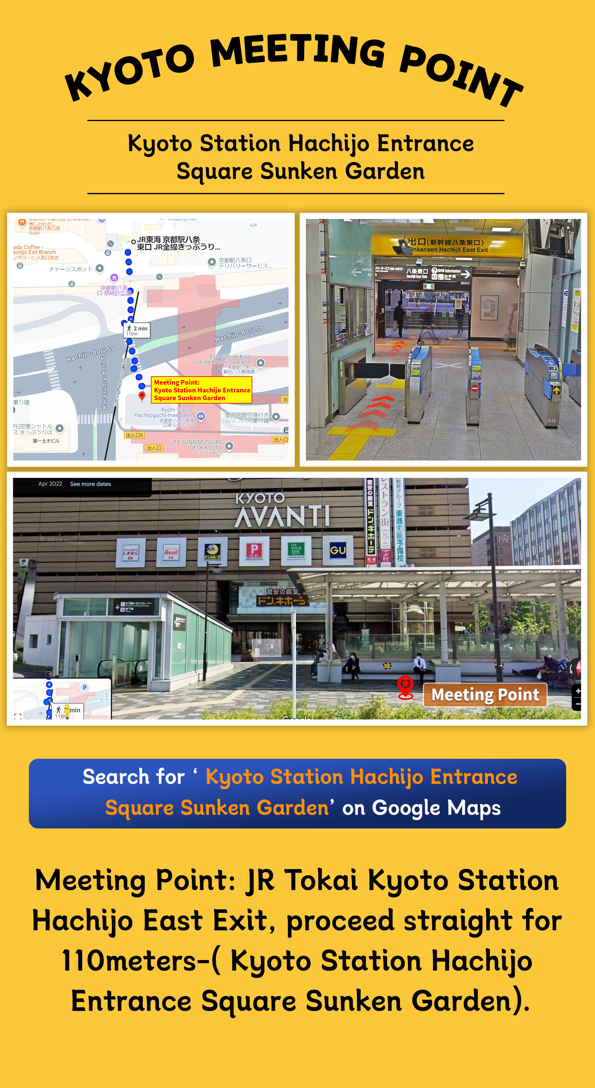 【오사카 출발】 7:50 모임 장소 도착, 8:00 정시 출발 오사카 근철 일본바시역 2번 출구 【교토 출발】 8:50 모임 장소 도착, 9:00 정시 출발 JR 도카이도선 교토역 8번 동출구 나와서 직진 110m