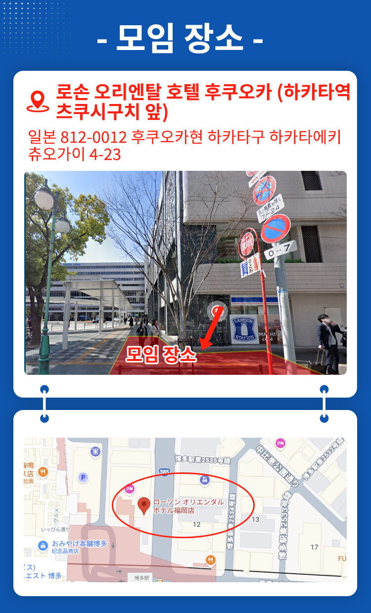 08:00 로손 후쿠오카 하카타 오리엔탈 호텔 (하카타역 츠쿠시구치 앞) 주소:ローソン オリエンタルホテル福岡店 4-23 Hakataekichuogai, Hakata Ward, Fukuoka, 812-0012, Japan